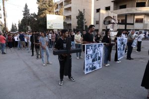 هذا وانتهى المسير بالوقوف دقيقة صمت أمام كنيسة السيدة العذراء وقراءة بيان باسم الشبيبة السريانية التقدمية من قبل السيد صبحي ملكي
