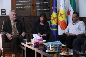 A delegation from the Coordination and Consultation Committee of our Syriac Assyrian national parties welcomed Ms. Nadine Maenza, representative of the U.S.-based Religious Freedom Institute, on Saturday evening at the headquarters of the Syriac Union Party in Qamishli.