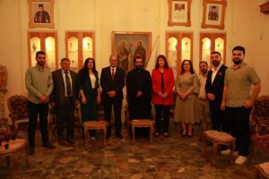 The delegation began their tour by attending the Divine Liturgy at the Syriac Orthodox Church of the Virgin Mary. During the service, Mor Maurice Amseeh, Metropolitan of the Jazira and Euphrates Diocese for the Syriac Orthodox Church, extended a special Easter greeting to Ms. Maenza, welcoming her to Qamishli through a message read by Father Saliba Abdullah.