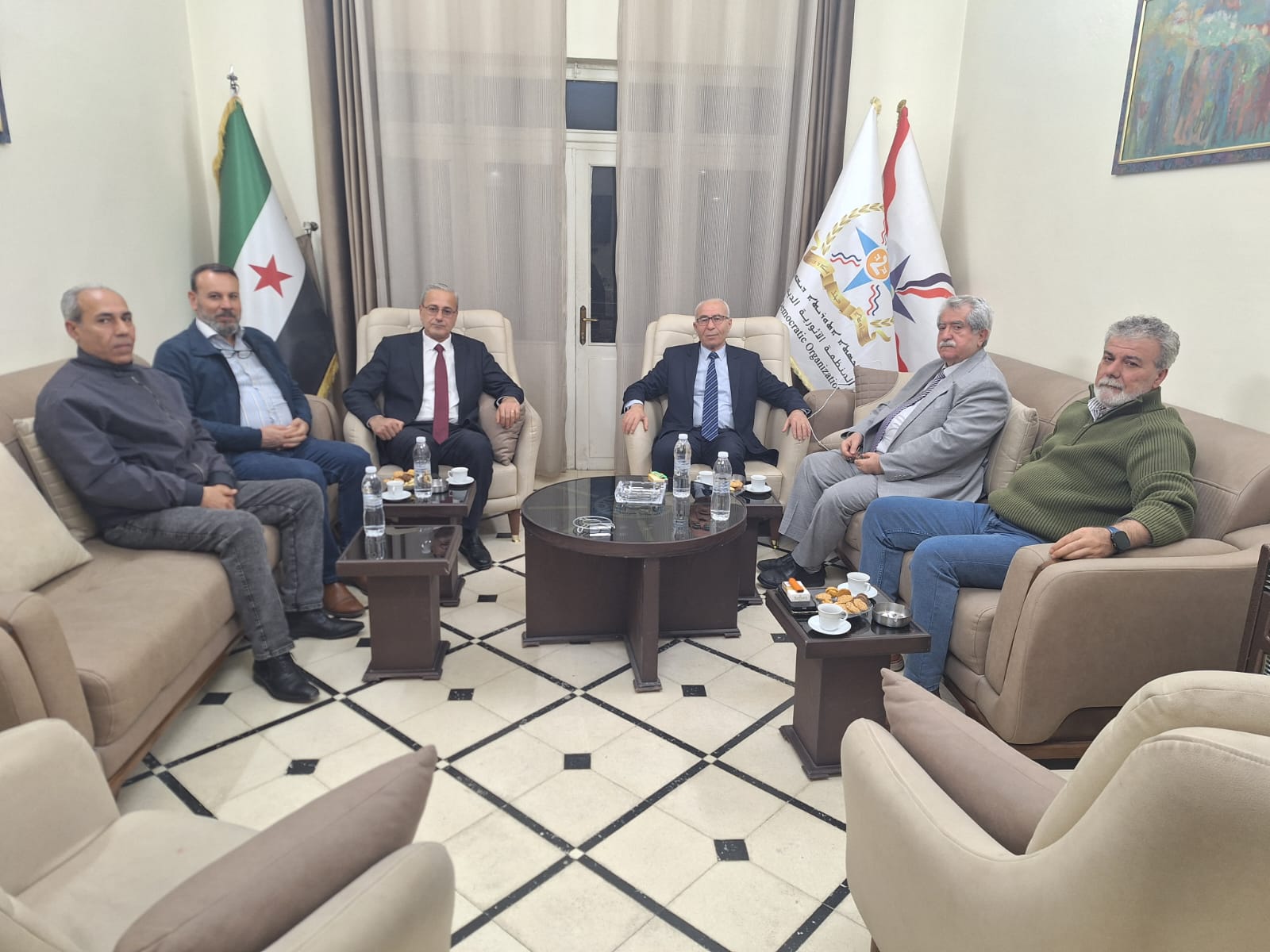 A delegation from the Syriac Union Party visited the headquarters of the Assyrian Democratic Organization in Damascus. The visiting delegation included Mr. Sanharib Barsom, Co-Chair of the Syriac Union Party, and Mr. Afram Ishaq, Head of Relations of the Syriac Union Party.